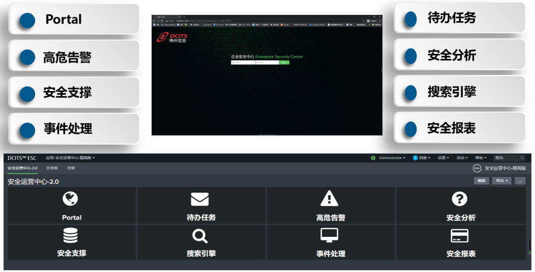 各功能模块既能有效单独运行,相互之间又深度关联,可实现安全运营高效支撑和管理。
