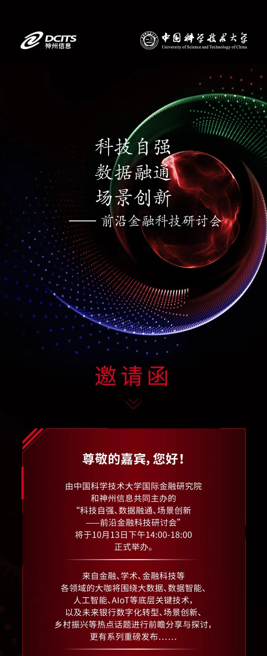 FinTech活动 | “科技自强 数据融通 场景创新——前沿金融科技研讨会”,10月13日即将召开