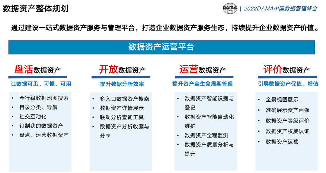 数据资产盘点和运营可以和数据资产运营平台结合起来,一个线下,一个线上,共同打造企业数据资产服务生态,持续提升企业数据资产价值。