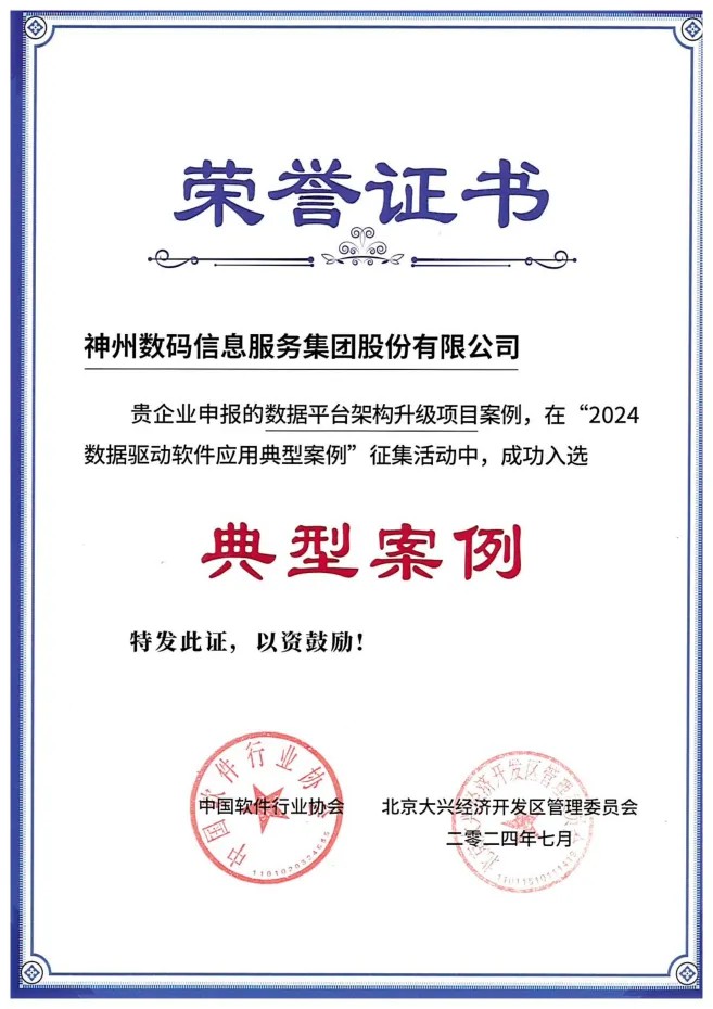 由中国软件行业协会信息主管(CIO)分会、数字产业创新研究中心、北京大兴经济开发区管理委员会联合发起的“2024数据驱动软件应用典型案例”征集评选结果揭晓,神州信息“数据平台架构升级项目”脱颖而出,成功入选该榜单,标志着神州信息在数据驱动软件领域的技术实力和实践成果得到了业界的广泛认可。